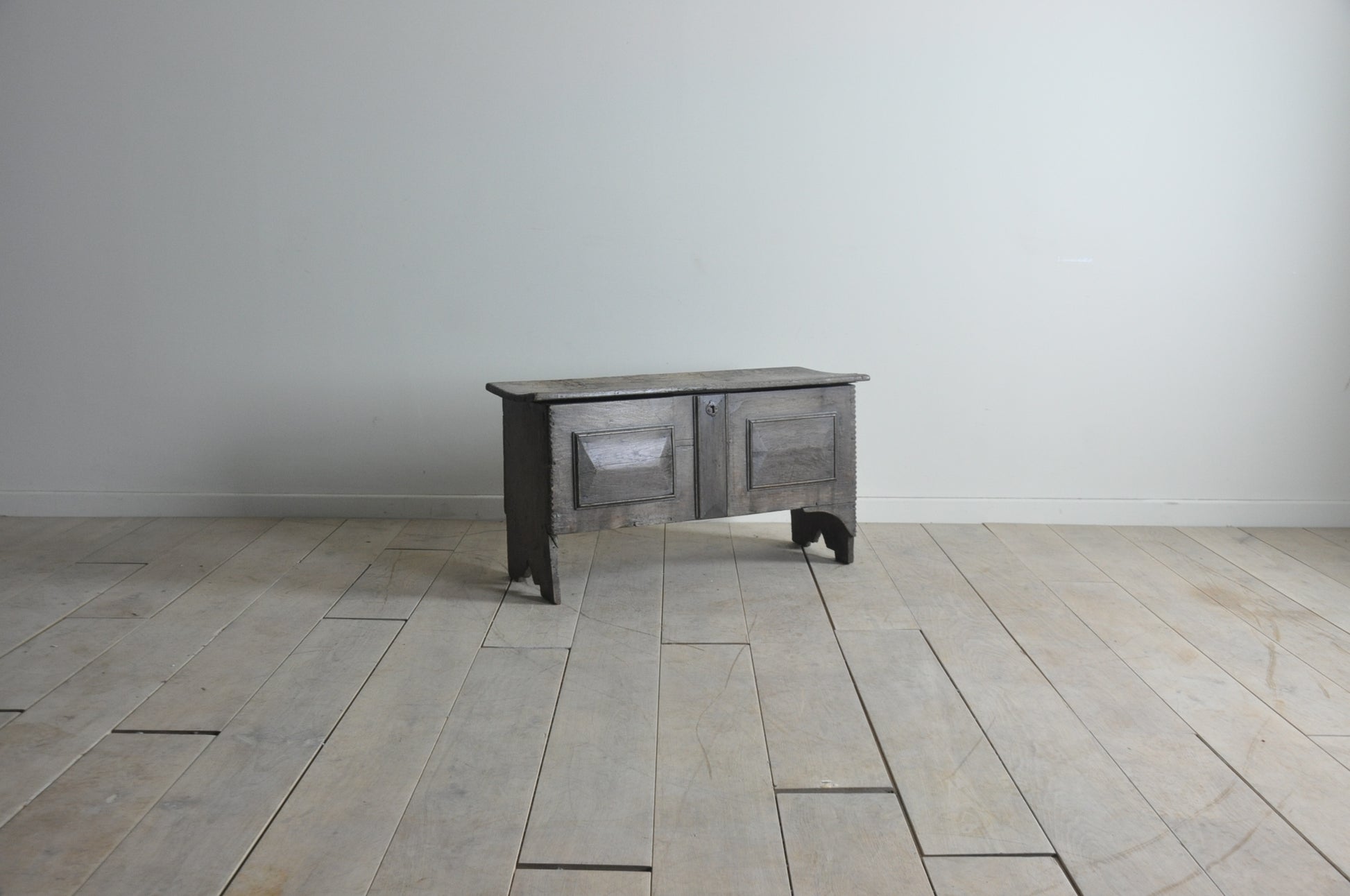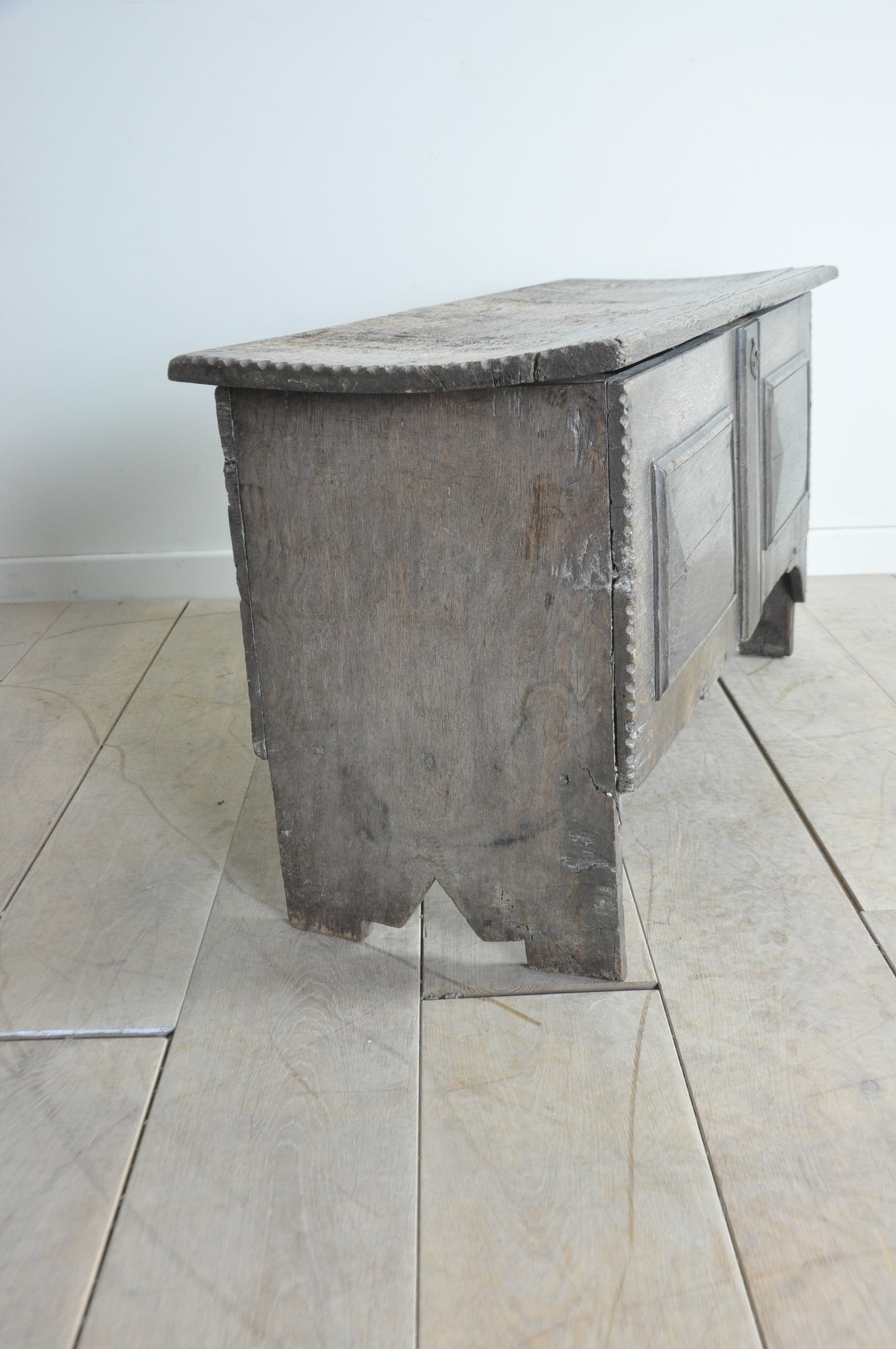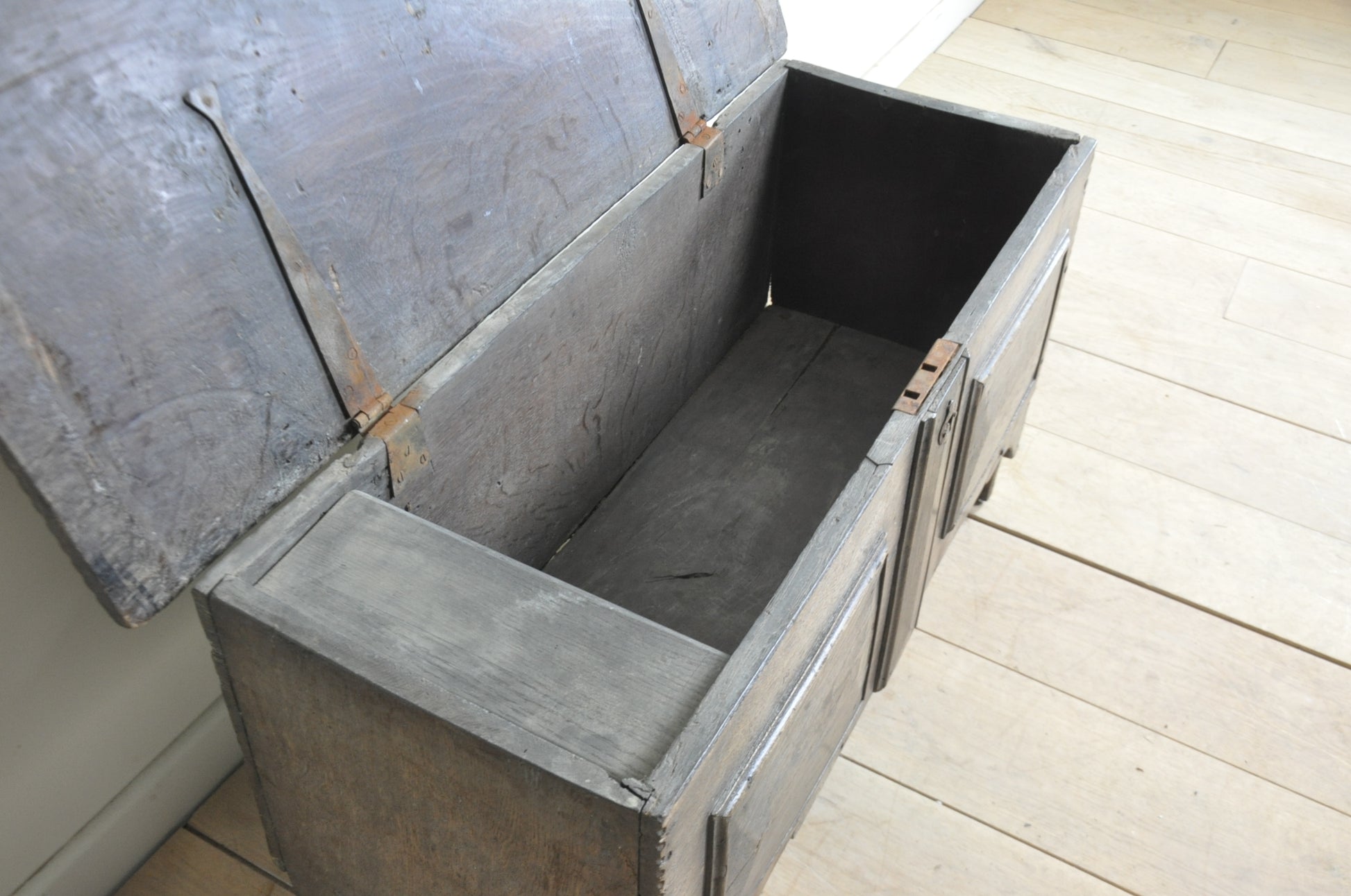 C17th dry oak 6-plank coffer of lovely light colour