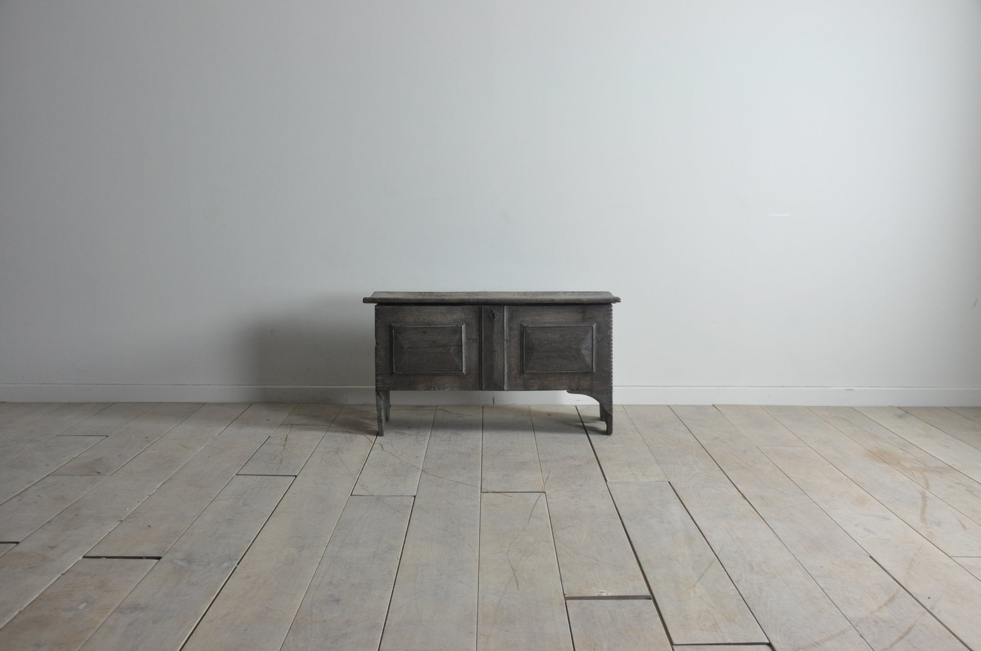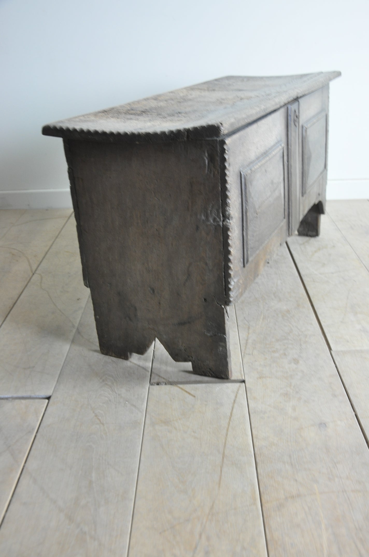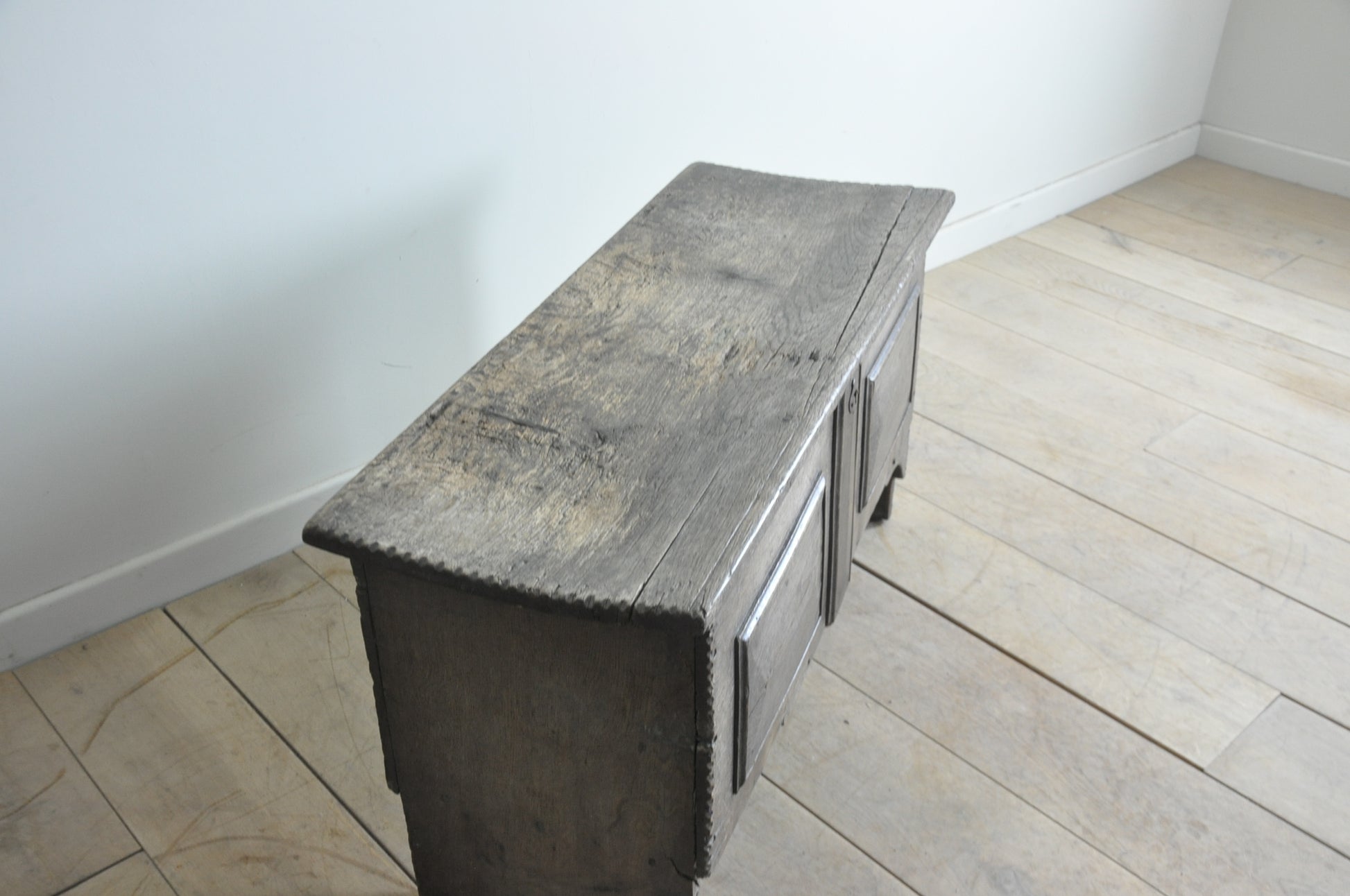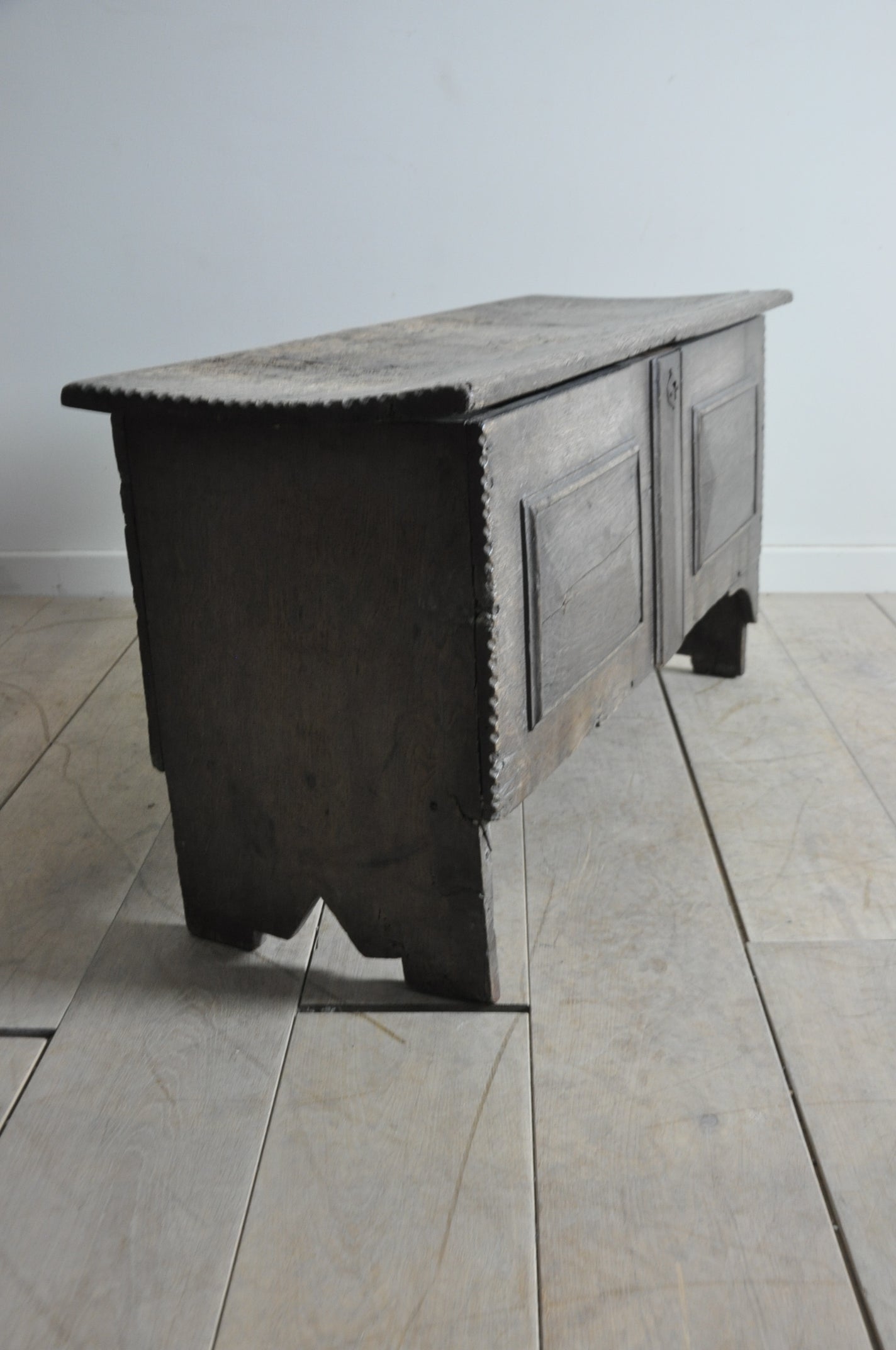 C17th dry oak 6-plank coffer of lovely light colour